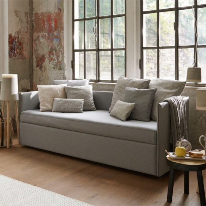 Диван-кровать Long Island отличается плавными линиями и уютным внешним видом. Преимуществом модели является механизм раскладывания: удобный диван превращается в универсальную кровать. Предоставлена возможность импровизировать с мягким изголовьем, которое можно уложить по периметру кровати по своему желанию. Диван-кровать Long Island станет идеальным решением для гостевых и малогабаритных комнат.